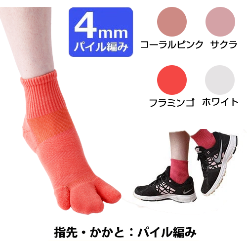 ●指先は、「2mm」パイルクッション編みで、浮き指などによる指先の摩耗を軽減。
